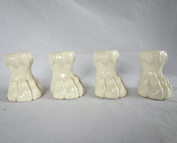 4 ornamental lion claws feet meant to hide an earthenware wood-burner stove's feet.