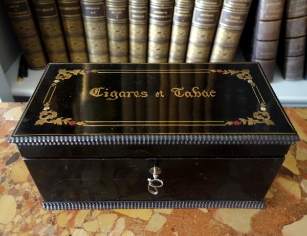 Napoleon III blackened wood and Boulle marquetry cigars box, brass inlays, mid 19th century circa 1840 - 1850.