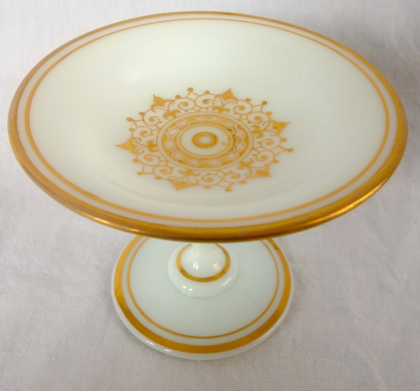 Baccarat crystal ring holder, white opaline enhanced with fine gold. Napoleon III period, mid 19th century circa 1850.