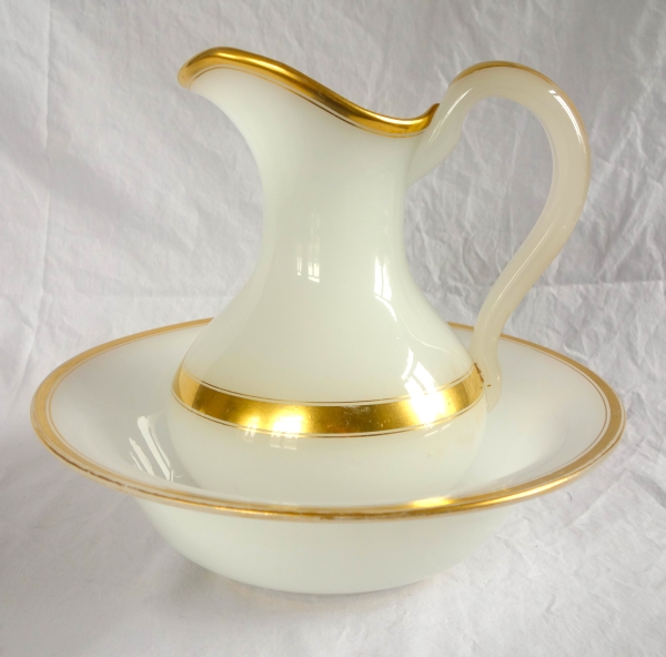 Beautiful Baccarat crystal hand washing set, white opaline crystal enhanced with fine gold - 19th century production circa 1850 - 1860 (Napoleon III period).