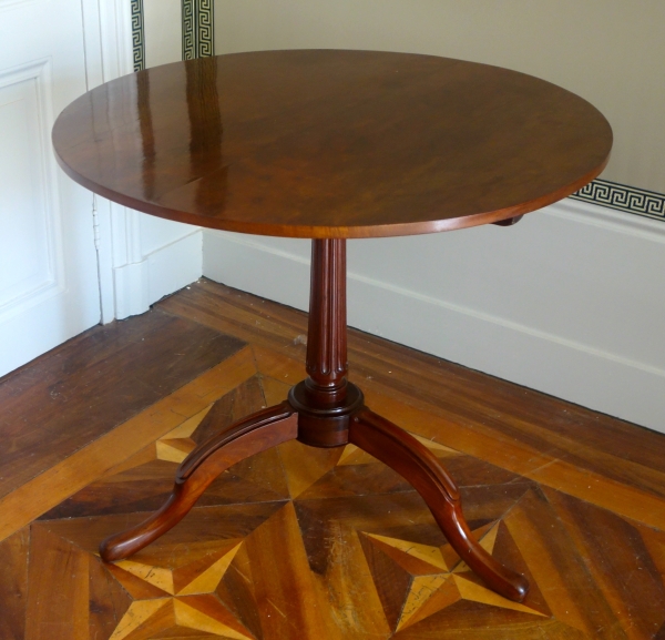 Solid speckled mahogany pedestal table, Louis XVI period, late 18th century.