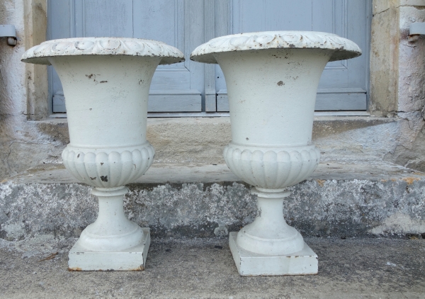 Pair of tall painted cast iron vases, Medicis shape, 19th century, circa 1880.