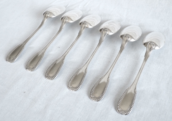 Beautiful early 20th century Louis XVI style production finely chiseled with pearls and acanthus after Puiforcat's pearls pattern (sometimes knows as Lamballe model).