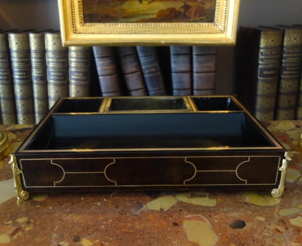 Large Louis XIV style Boulle marquetry inkwell, blackened wood veneer ornamented with ormolu pieces in the corners (mercury gilt). Napoleon III period - 19th century circa 1850.