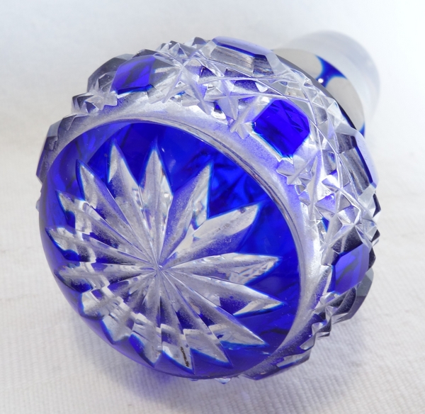 Baccarat crystal perfume bottle, Diamants Pierreries or Pontarlier pattern, cobalt blue overlay crystal.