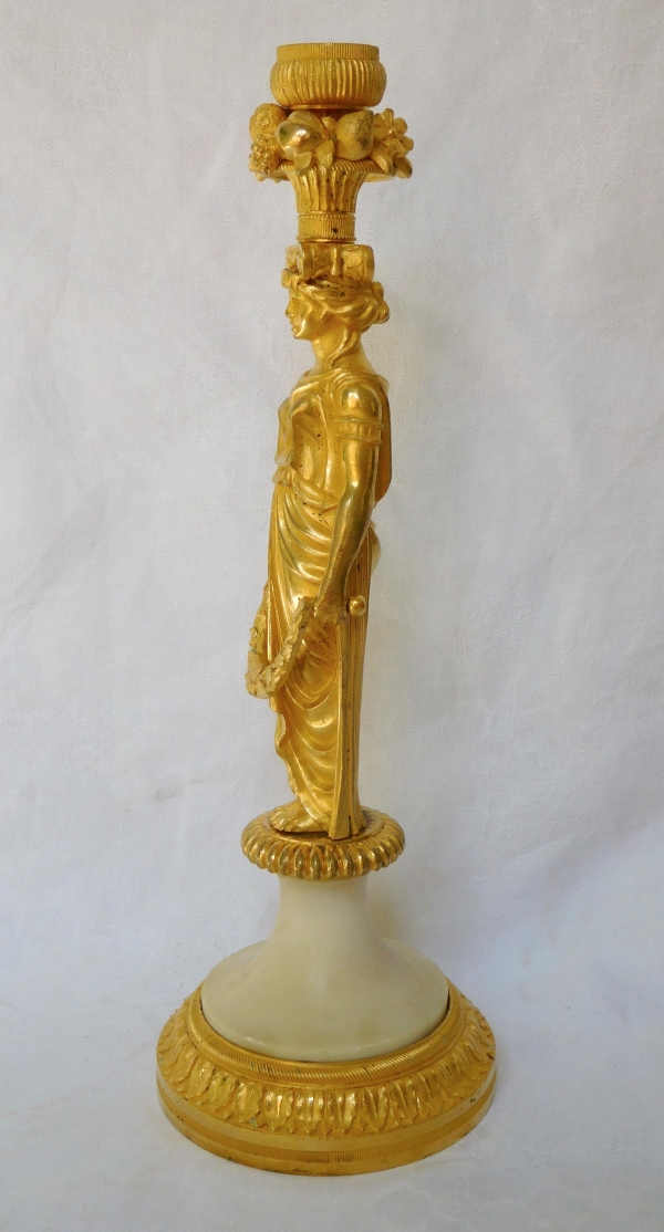 Pair of 18th century ormolu and white marble candlesticks. Beautiful Russian neo-classical work circa 1790, Louis XVI style.
