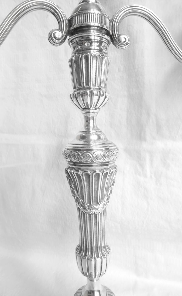 Pair of Louis XVI style sterling silver candlesticks / candelabras, beautiful late 19th century production.