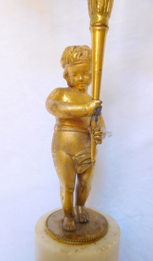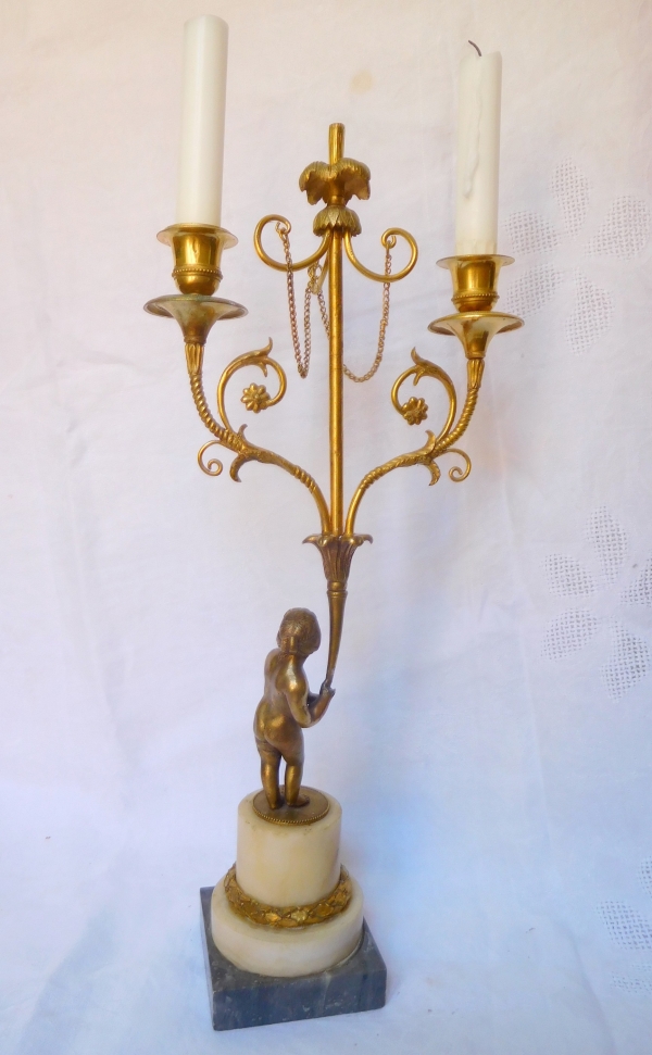 Pair of Louis XVI style ormolu and marble candelabras, Napoleon III production, mid 19th century circa 1850.