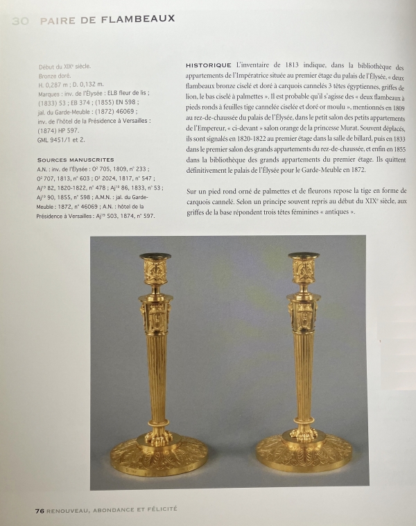 Top-of-the range quality, much finely executed ; they are made of 12 independant pieces (quality indicator), mercury gilt bronze (ormolu) with a matt and shiny finish.