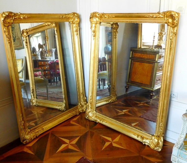 Tall Louis XV style mercury mirror, gilt wood frame, 19th century production. Beautiful, sparkling mercury glass.