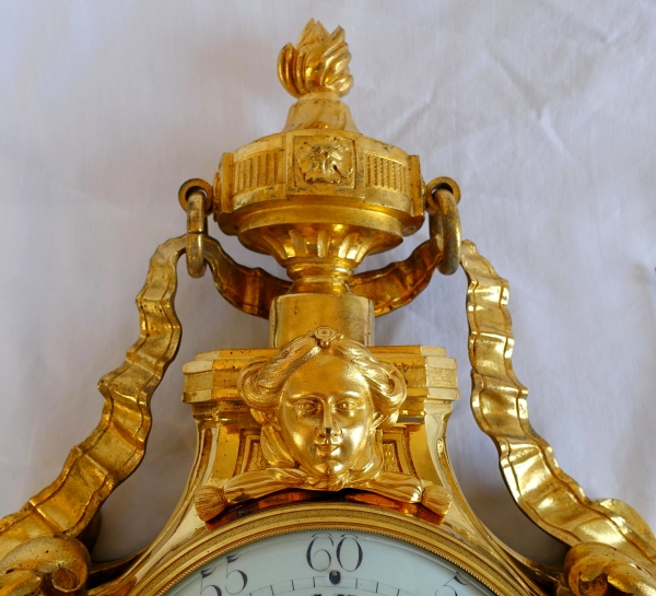 Tall 18th century decorative clock, finely chiseled ormolu, matt & shiny finish, Louis XVI period, by Beauvarlet (Louis Antoine Beauvarlet, great Parisian clock maker) and Osmond (Robert Osmond, great Parisian bronzemaker).
