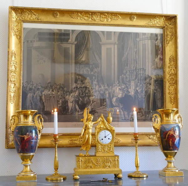 Very well preserved. Colors have remained bright, gilt is still very fresh with local slight wear on the base's edge. No accident at all, no repair, superb. Very rare set to find in this condition, ideal to complete an Empire decoration.