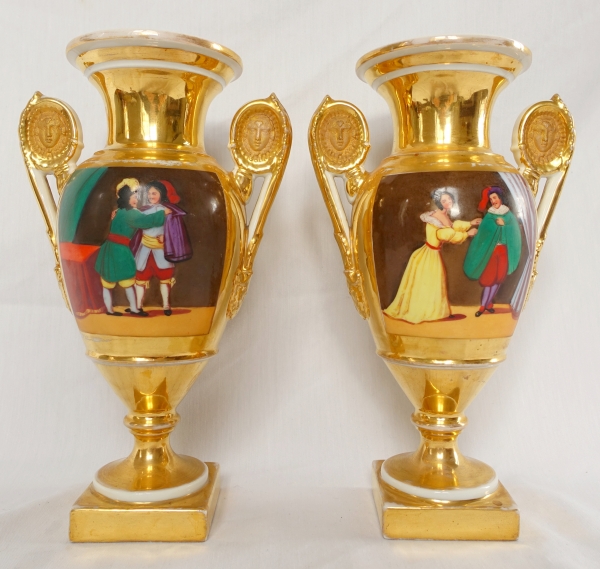 Beautiful pair of Paris porcelain Empire vases - early 19th century production circa 1830.