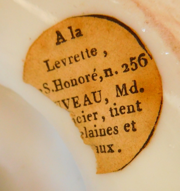 The original sticker of Fauveau Manufacture has been preserved since 200 years ; also, a written signature "Fau" under the vase.