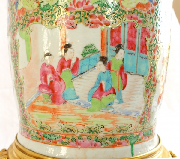Tall Canton porcelain and ormolu lamp base, China, late 19th century circa 1880.