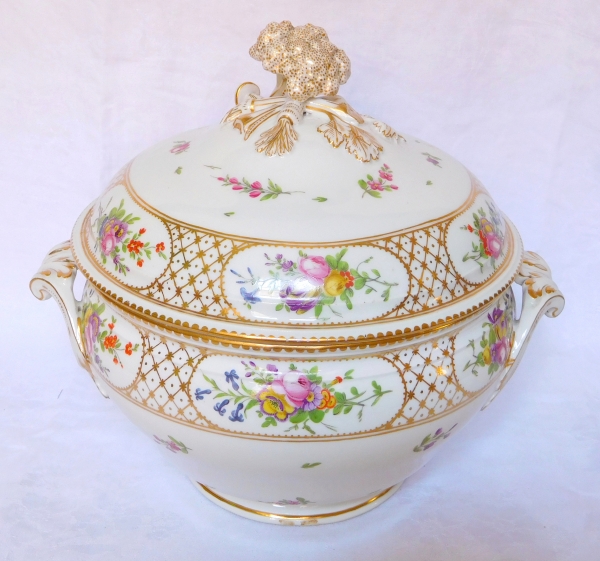 Polychrome gilt porcelain tureen - Manufacture de la Reine, Louis XVI period, 18th century.