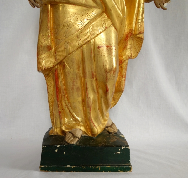 Tall statue of Saint Joseph, carved wood gilt with gold leaf (clothes) and patinated wood (hands and head). Early 19th century production circa 1820-1830.