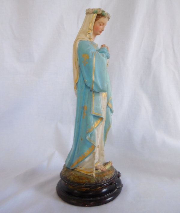 Tall statue of Virgin Mary, polychrome gypsum enhanced with fine gold gilt, 19th century production circa 1860 - 1870 (Napoleon III period).