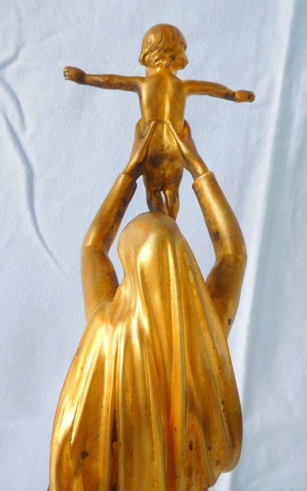 Virgin Mary and Child from Albert, gilt bronze statue after Albert Roze's late 19th century work.