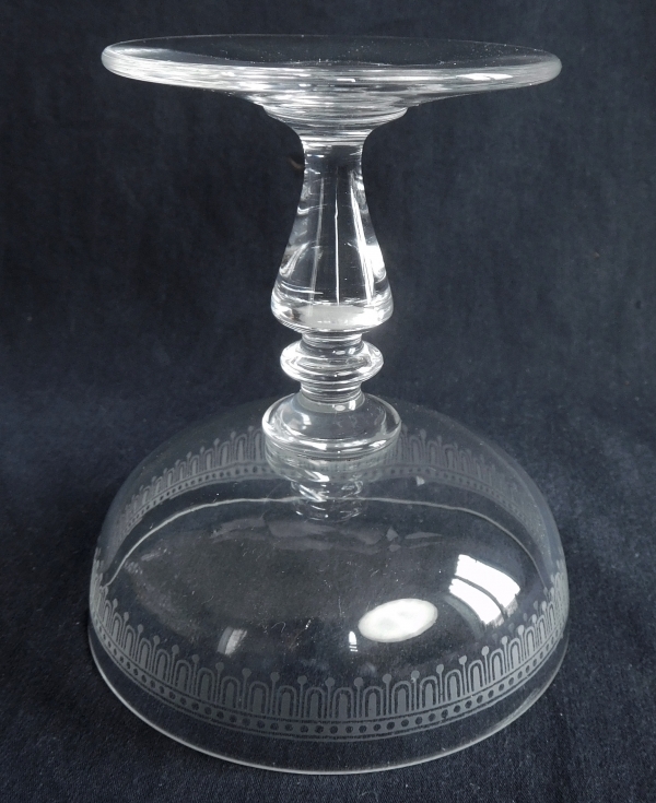 Baccarat crystal wine glass, Louis XVI style engraving.