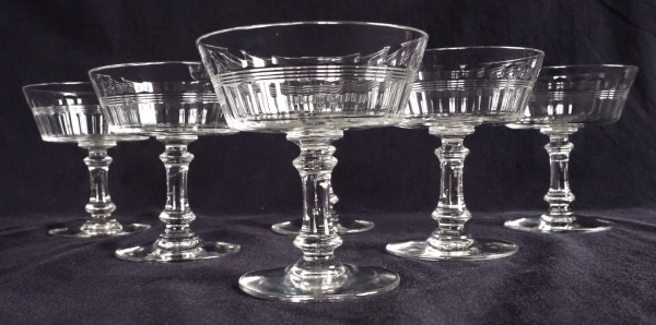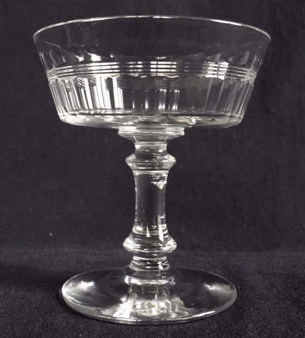 Baccarat crystal champagne glass or sherbet, cut crystal, Chicago pattern variant.