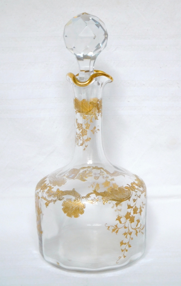 St Louis crystal liquor decanter, Massenet pattern, engraved version enhanced with fine gold.