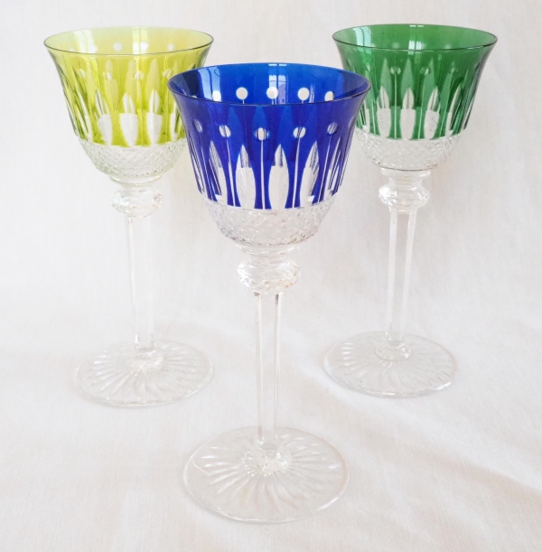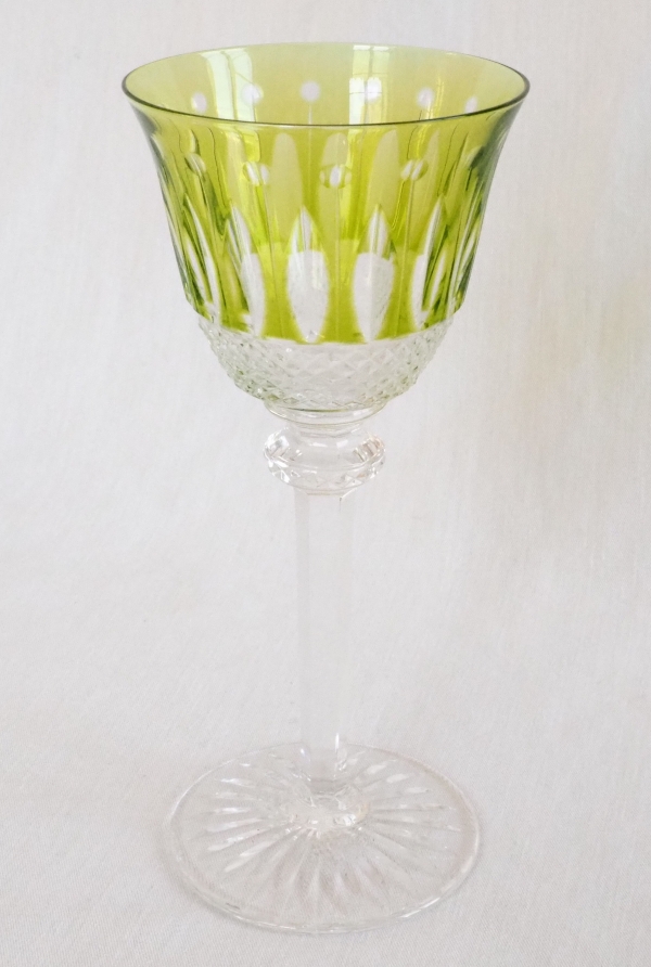 Beautiful St Louis crystal hock glass, Tommy pattern, yellow overlay crystal.