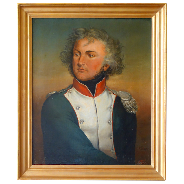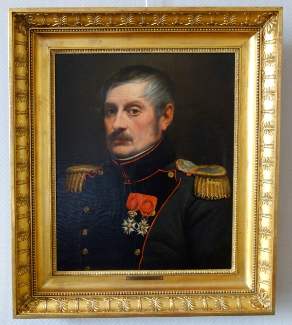 Portrait of a French officer under French Empire, oil on canvas set into a top quality gold leaf gilt wood frame.
