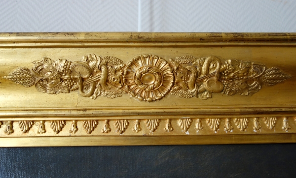 Very large format, strong decorative effect, much refined painting set into a beautiful gold leaf gilt wood frame.