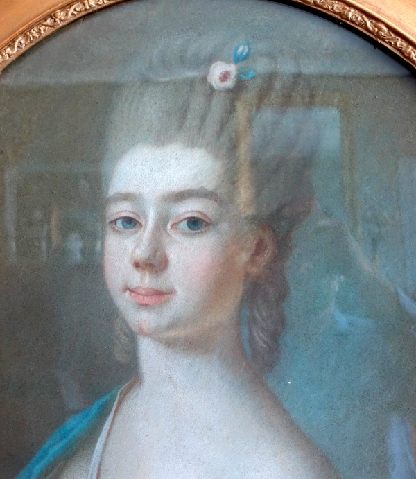 18th century French school, portrait of an aristocrat as Flora, Louis XV period pastel circa 1770 set into a gold leaf gilt sculpted wood frame.