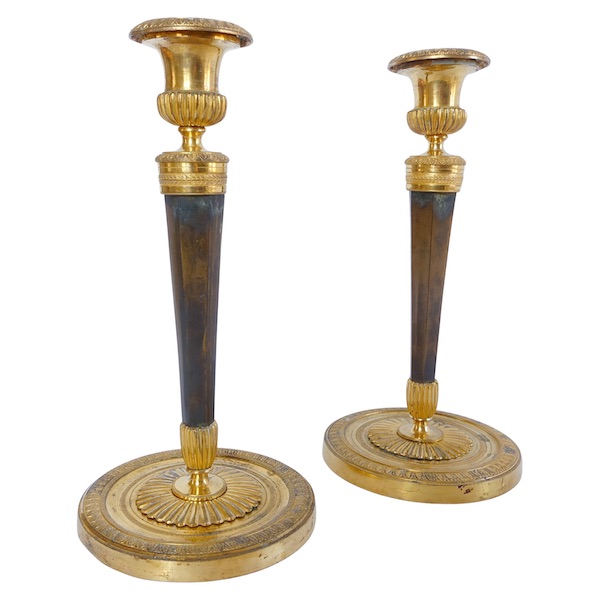 Paire de monumentaux chenets aux Sphinges, bronze ciselé & doré - style Régence, époque Napoléon III