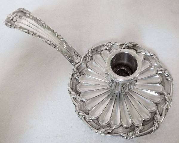 Chandelier, bougeoir à main en argent massif, très riche modèle de style Louis XVI.