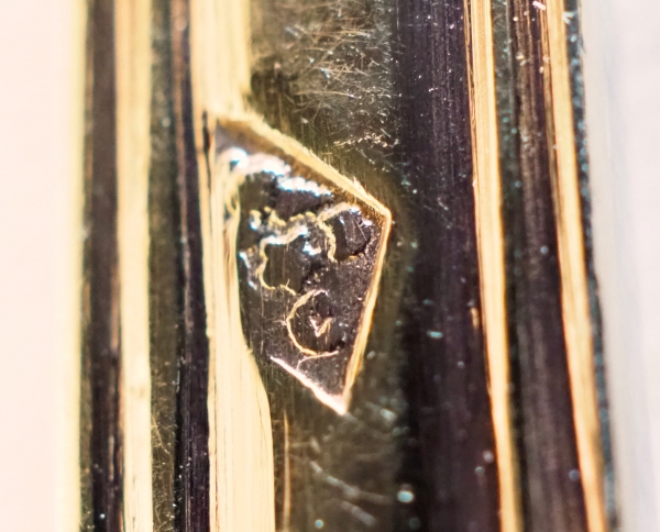 Les couverts portent le poinçon Vieillard 1er titre en usage entre 1819 et 1838, le poinçon de grosse garantie de Paris, ainsi qu'un poinçon d'orfèvre non encore identifié.