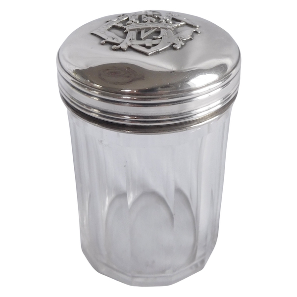 Boîte à poudre en cristal de Baccarat, argent massif, poinçon Minerve, par Henri Soufflot