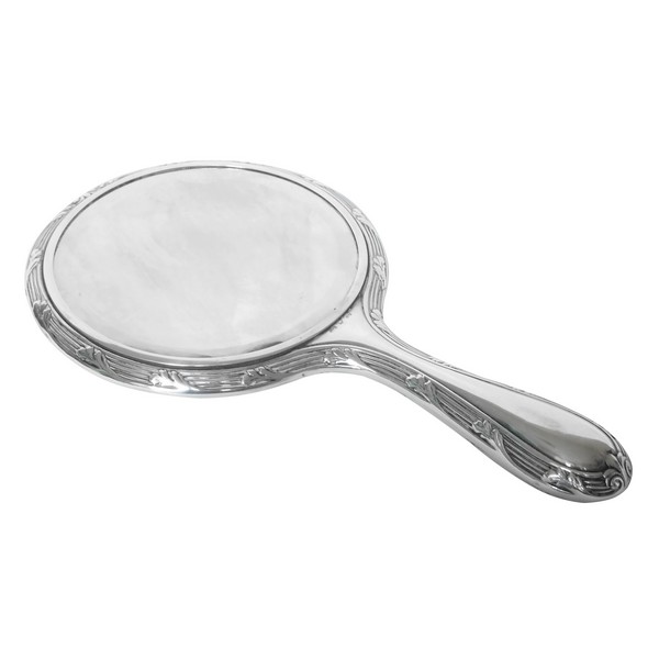 Tetard Frères : miroir face à main monture en argent massif, poinçon Minerve