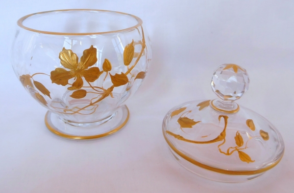 Sucrier en cristal de Baccarat taillé et à décor floral doré à l'or fin. Epoque fin XIXe siècle ou début XXe.