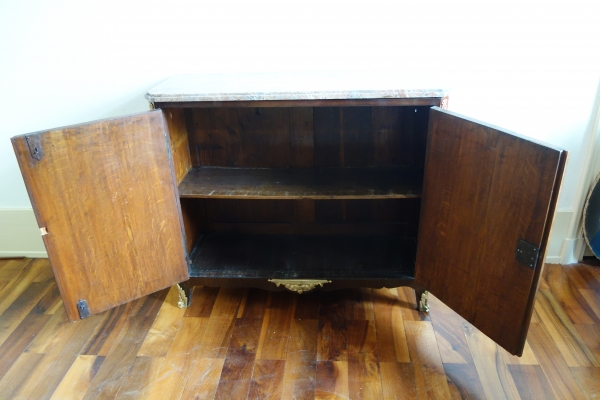 Rare meuble bas d'armoire ou petit buffet en marqueterie de bois de rose dans des encadrements de d'amarante.