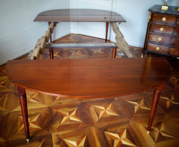 Grande table de salle à manger en acajou massif d'époque Louis XVI Directoire, fin XVIIIe siècle ou tout début XIXe siècle.