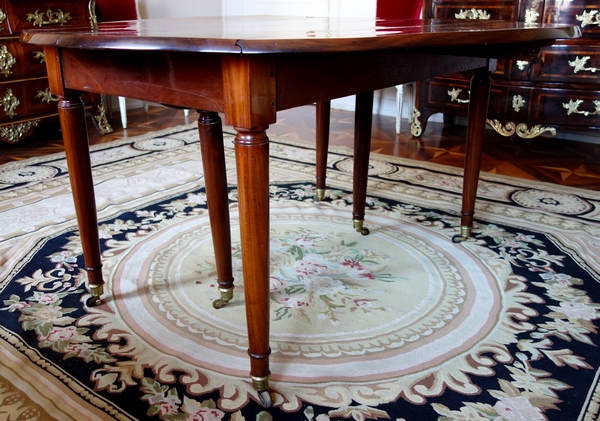 Grande table de salle à manger en acajou et plaquage d'acajou d'époque Louis XVI Directoire, fin XVIIIe siècle ou tout début XIXe siècle.