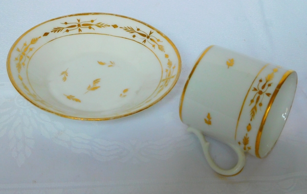 Charmant service à café en porcelaine de Paris d'époque fin XVIIIe siècle ou début XIXe siècle (époque Empire), composé de 6 tasses litrons avec leur soucoupes.