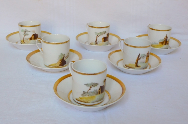 Décor de paysages italiens, chaque pièce est un tableau unique avec une architecture de fantaisie dans le goût italien, rehaussé de filets dorés à l'or fin.