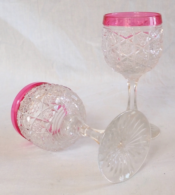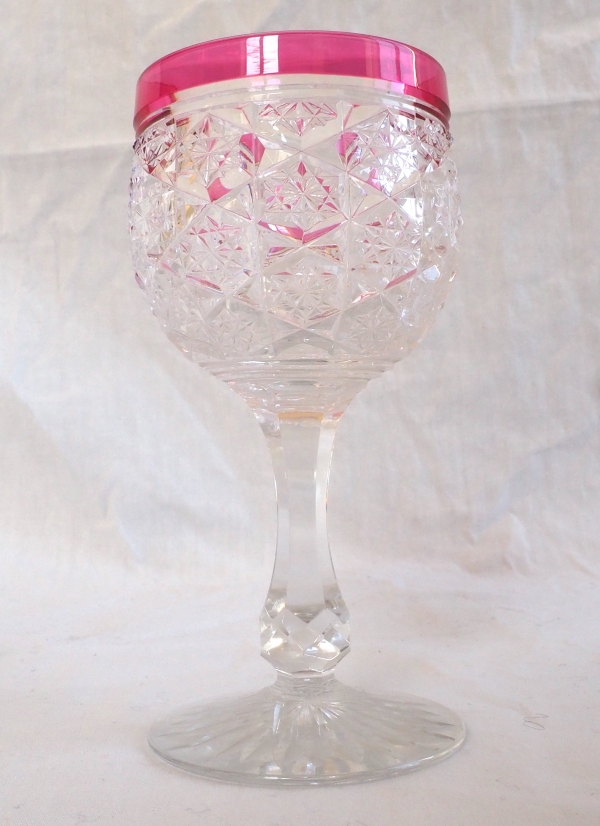 Exceptionnel verre à vin du Rhin en cristal de Baccarat très richement taillé à bordure en cristal de couleur rose, modèle Lorient.