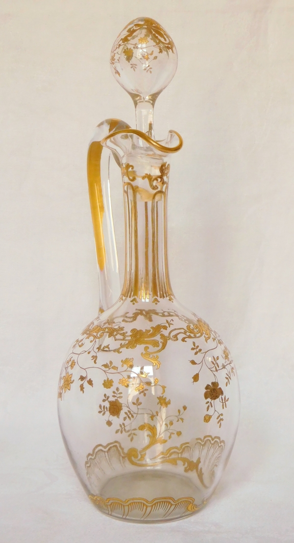 Aiguière / carafe à eau en cristal de Baccarat, modèle Louis XV doré.