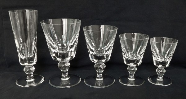 La taille est simple, de simples tailles verticales oblongues sur le verre et une jambe lisse, dans un cristal fort, donnant une belle brillance aux verres.