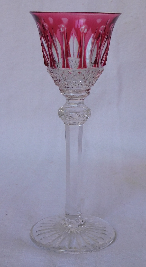 Verre à liqueur en cristal de St Louis, modèle Tommy, cristal overlay rose.