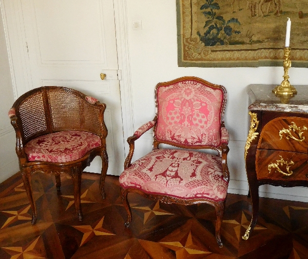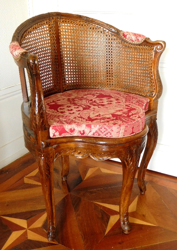 Beau modèle aux proportions élégantes, notre fauteuil de cabinet est un siège rare. On trouve plus régulièrement les copies du XIXe siècle que les modèles du XVIIIe comme celui ci.